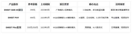 EMEET壹秘通过C60E 4K双目、Piko系列和PIXY三款产品,构建了完善的双目摄像头产品矩阵。这一战略深度契合了当下内容创作大众化的趋势——让专业级影像工具从少数人的特权,转变为每个创作者触手可及的日常工具,完美践行了品牌"技术普惠"的核心理念。