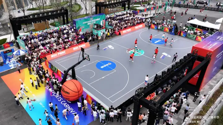 作为本次“运动嘉年华”的重头戏,2025BSK篮球争霸赛西南大区赛小组赛在户外赛场打响。尽管天降细雨,赛场仍依旧座无虚席,上万名观众围观,线上直播观看量突破80万,相关话题“#BSK西南大区赛宜宾站”在川渝地区社交平台持续升温。来自四川、重庆、云南、湖南的12支球队从早10点至晚8点轮番激战,为唯一晋级名额展开激烈角逐。现场球迷手持国旗,激情呐喊,将赛场围得水泄不通。