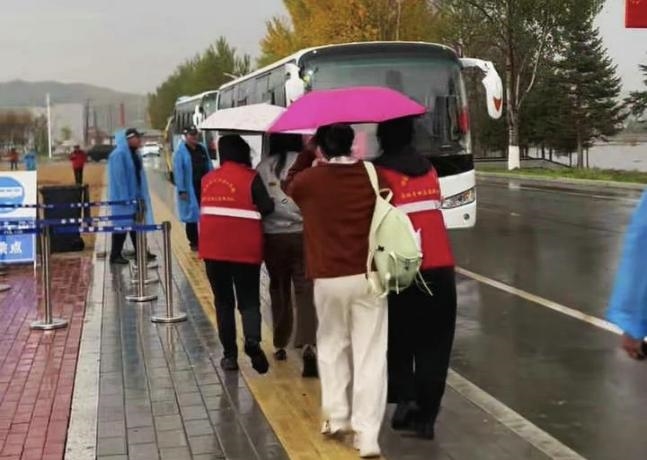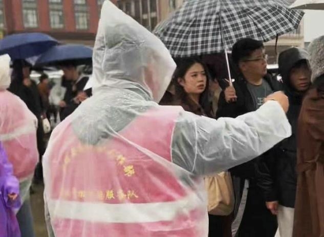4日上午的一场秋雨,多名志愿者冒雨坚守服务岗,主动为游客指引路线,协助照料老人与孩童,及时解答游览疑问。雨水打湿了他们的衣衫,却用热情与担当为游客撑起“暖心伞”,赢得一致称赞。