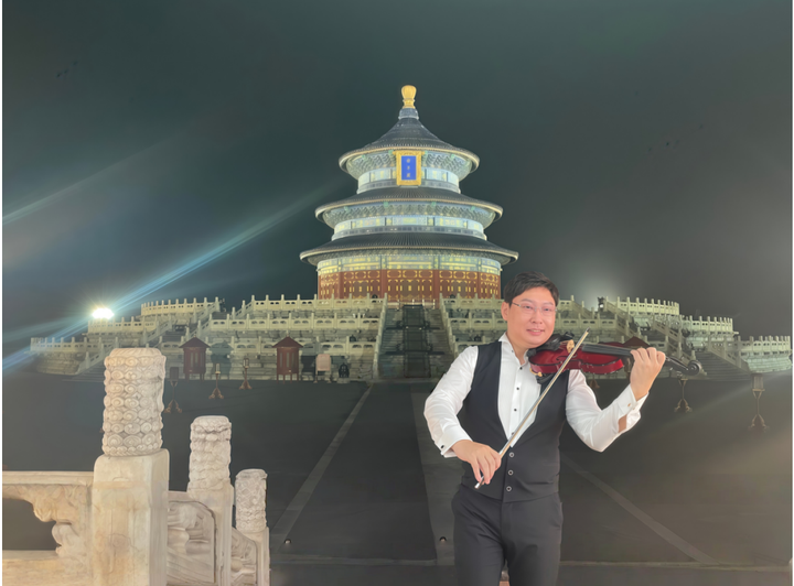 此次演奏,小提琴通体“中国红”的设计匠心独运。在中华人民共和国十一国庆与中秋佳节之际,这抹炽烈的红色,不仅代表着节日的喜庆与吉祥,更寓意着大国崛起的力量与全球华人的血脉团圆。张少博站在祈年殿前,以这抹“中国红”奏响和平之愿,个人情感与家国情怀、人类命运在此刻紧密相连,完成了从“小我”到“大我”的艺术升华。