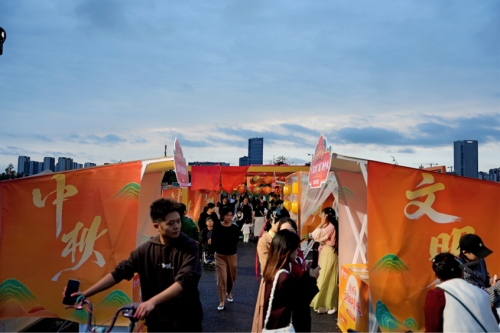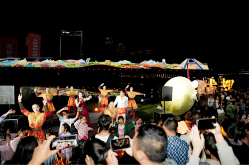 10月6日 “中秋湖月夜” 则聚焦传统中秋文化,以 “美好生活月发幸福”为核心,通过NPC互动情景剧、国风舞蹈、汉服秀与经典歌曲演唱,让传统节日焕发新活力。现场设置的月亮剪影装置与中秋氛围美陈,成为群众打卡热门地,灯谜闯关、诗词飞花令等互动环节趣味十足,中秋花灯、主题盲盒等超500份礼品的发放,让现场4000余名参与群众切实感受节日喜悦,传统与现代碰撞出独特的文化魅力。