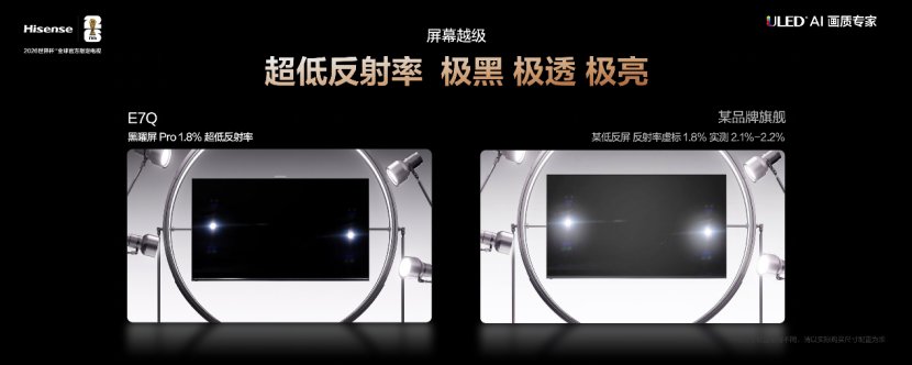 屏幕也没含糊,用的是海信独有的顶级黑曜屏Pro,实测反射率低到1.8%!这概念咋理解?白天客厅阳光直射,不用急着拉窗帘,画面也不反光;晚上开着台灯追剧,屏幕不会映出灯光的影子,照样能看清每一处细节,随时随地都能沉浸到画面里,再也不用跟环境光“较劲”。