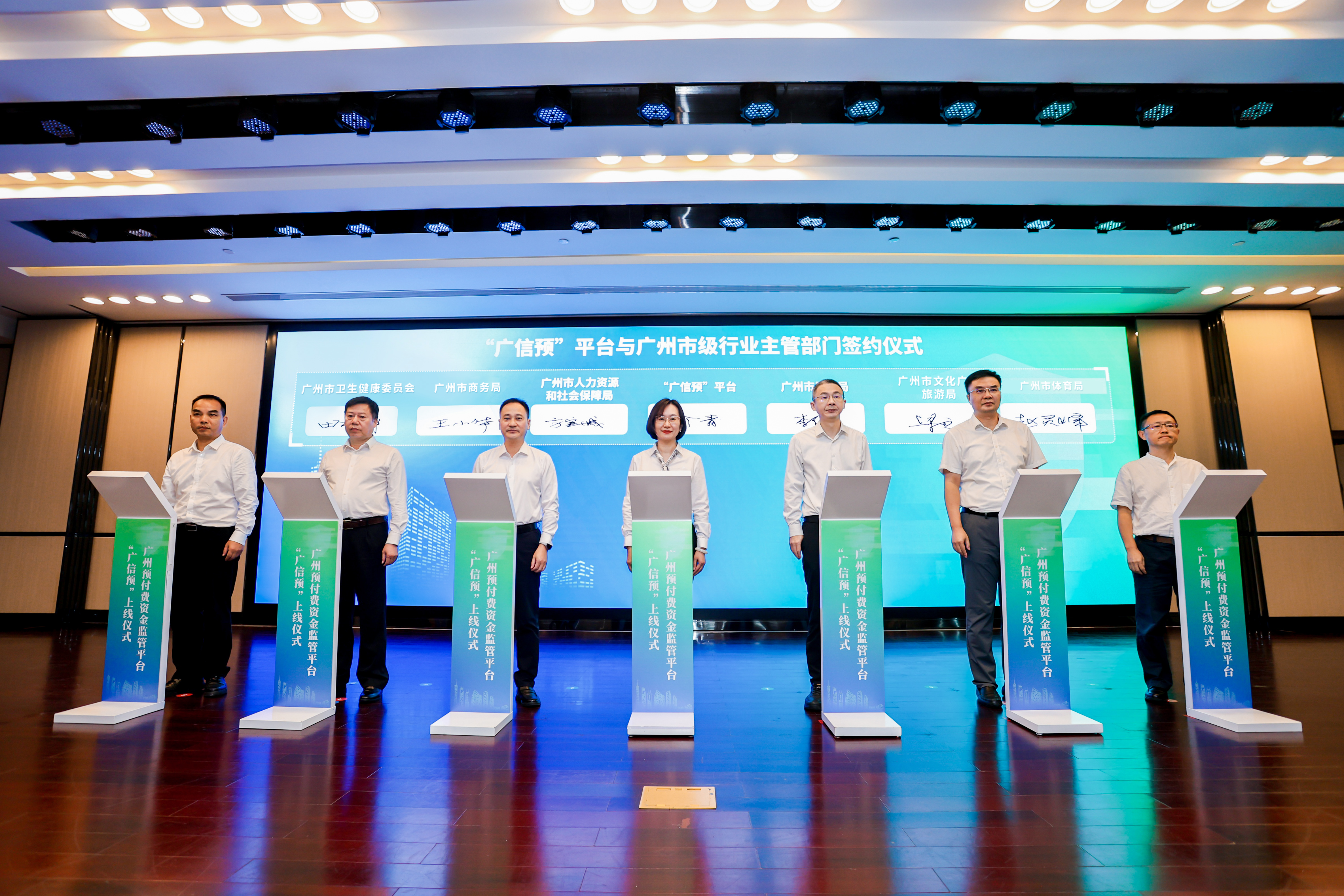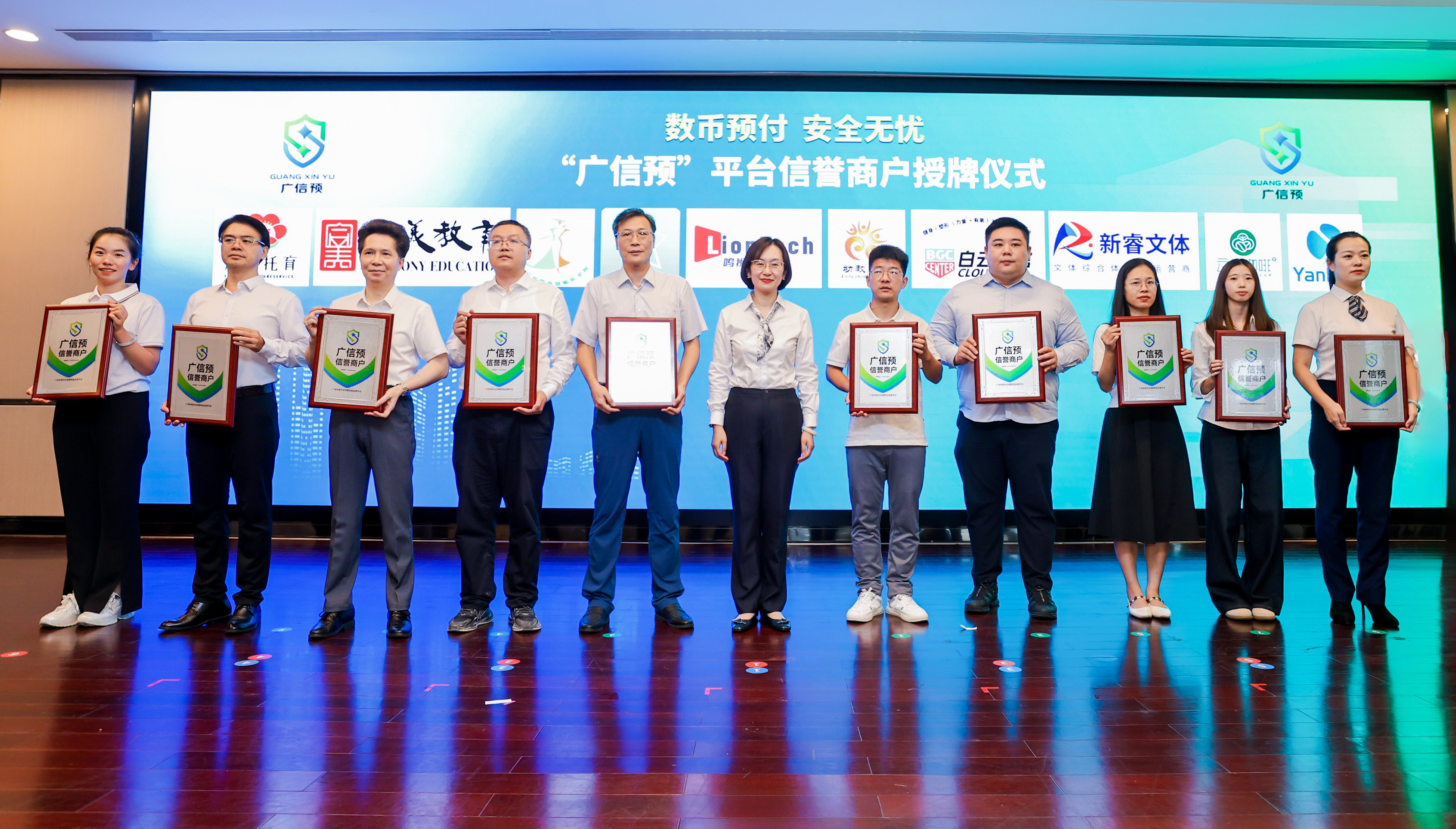 “广信预”平台筹备伊始,就担负着我市消费预付资金监管专项治理和数字人民币应用推广的重任,筹备期间得到社会各界高度重视,已与多个行业主管部门和各区建立常态化沟通交流机制,与中国农业银行、中国建设银行、广州银行等10余家金融机构达成合作,同时平台正加快推进托育、职业技能培训、养老、餐饮零售、文化旅游、加油站、运动健身等重点领域的应用广度和深度。活动现场,“广信预”平台代表与广州市卫健、人社、民政等6家行业主管部门签署战略协议,并为各行业首批入驻10家商户代表颁发信誉商户标识。