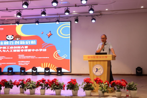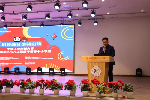 大赛组委会秘书长邵延军先生在开幕式上发表了热情洋溢的致辞。他首先代表大赛组委会,对莅临现场的各位领导、嘉宾表示了热烈欢迎,并向本次金华赛区的承办单位——浙江师范大学计算机科学与技术学院青少年科技创新研究院、金华市金东区未来教育实践中心、金华市金东区金义小学,以及支持单位——金华市人工智能学会、兰溪市机器人协会的精诚合作与辛勤付出,表达了诚挚的谢意。