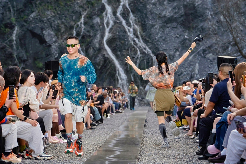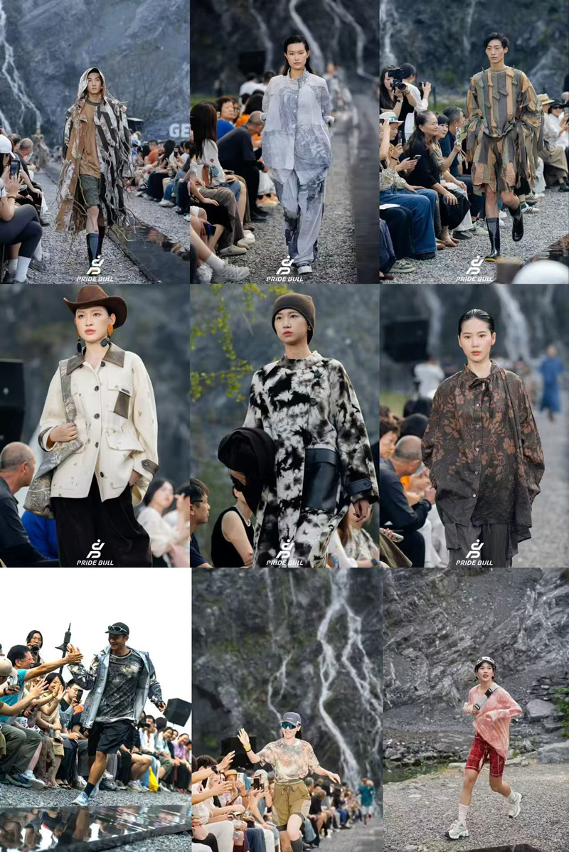 为了让“植染+运动”的核心理念落地生根,本次大秀以三大主题层层递进、直击人心:从“传统禅意”的静谧雅致,到“现代生活”的简约舒适,最终聚焦“植染运动户外”的活力迸发。秀场彻底打破传统T台局限,创新性引入跑山场景——数名跑山爱好者与专业模特同台演绎,在格里恩瀑布的壮阔自然背景下,既展现了植染服饰的透气、耐磨等户外功能,更释放出“自然之色”与运动活力碰撞的美学张力,一举为“植染运动户外”立下清晰标准:成为连接传统与现代、自然与科技的“户外时尚纽带”。