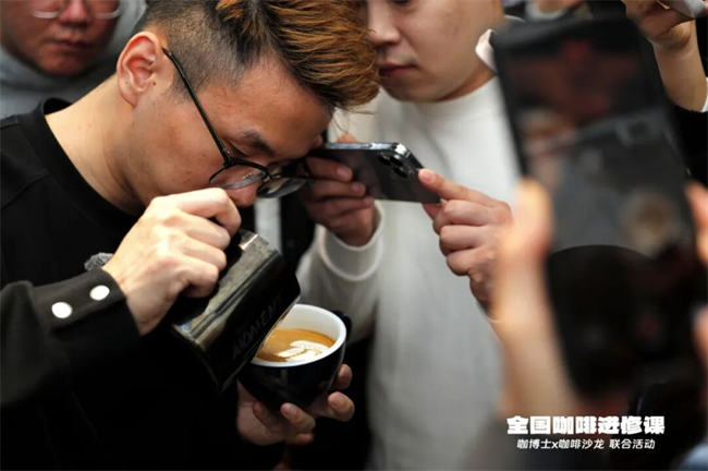 此次活动咖博士重磅邀约 2025年世界拉花艺术大赛世界冠军陈卓豪担纲分享嘉宾,众多资深精品咖啡店主、知名咖啡博主及咖啡爱好者慕名到场,在世界冠军的专业指导下,聚焦门店奶咖出品秘诀与拉花技巧,开启了一场为期 2 小时的高规格咖啡知识盛宴。
