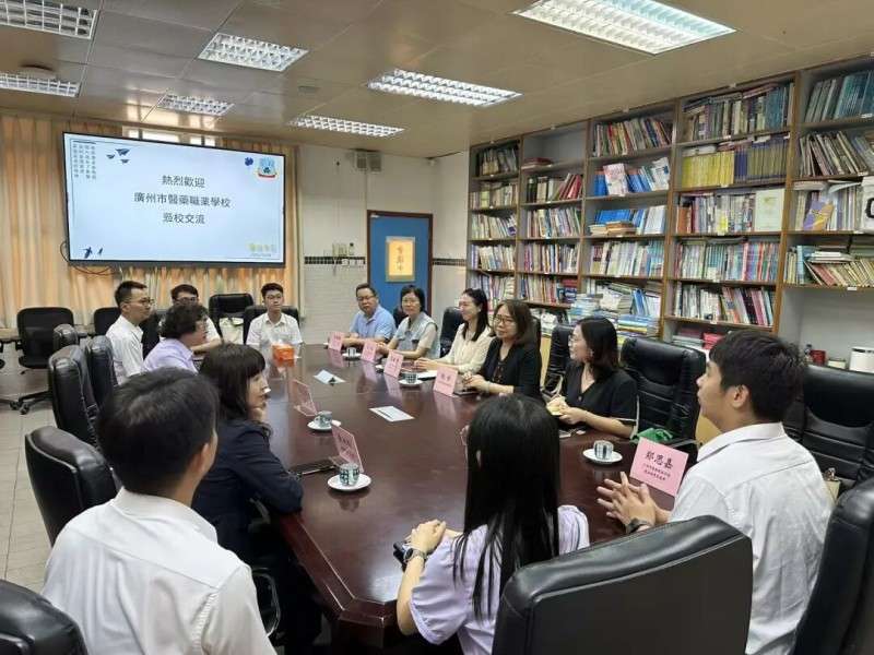 劳校中学郑杰钊校长、邵朝霞副校长、董淑珍副教导主任等与广州市医药职业学校鲍静校长、梁敏香副主任等老师开展了座谈。郑杰钊校长围绕学校基本概况、教学理念、教学特点、科技创新以及对外交流等多个方面做了详尽介绍。广州市医药职业学校鲍静校长就学校基本状况和此次赴澳调研的核心目的进行了说明。双方针对澳门学生前往广州市医药职业学校开展中医药职业启蒙研学活动展开了热烈的交流与讨论,期望借此机会推动澳门师生感知祖国、融入国家发展,并助力两校成为推动粤港澳大湾区中医药文化互动与融合的标杆。