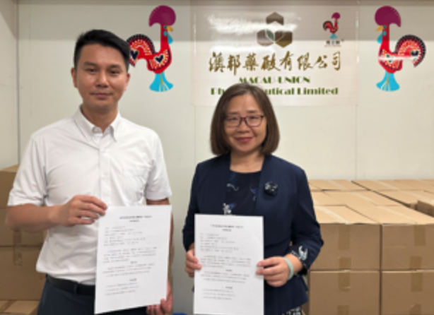 随后,在刘会长的陪同下,我们参观了澳邦药厂有限公司。刘会长同时也兼任澳邦药厂有限公司技术发展总监,刘总监介绍了公司架构、发展历程、产品市场分布等,并重点介绍了澳门首个跨境委托生产药品“横琴生产+澳门监制”马交牌千里追风油。该产品是落实《横琴粤澳深度合作区建设总体方案》“对在澳门审批和注册、在合作区生产的中医药产品、食品及保健品,允许使用‘澳门监造’、‘澳门监制’或‘澳门设计’标志”政策的首个落地项目。