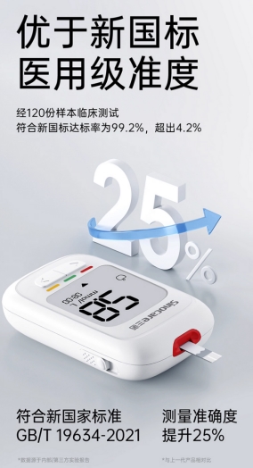 就像买电器要看 3C 认证,选测糖仪的首要标准,是必须通过《GB/T 19634-2021》新国家标准。这个被誉为血糖仪 “度量衡” 的文件,对误差范围做了严格规定:当血糖值≥5.6mmol/L 时,误差不能超过 ±15%;<5.6mmol/L 时,误差需≤±0.83mmol/L。举个例子,如果测出来空腹血糖是 5.0mmol/L,那么实际血糖应该在 4.17~5.83mmol/L 之间,超出这个范围就说明血糖仪 “不靠谱”,难以满足日常血糖监测的基本需求。
