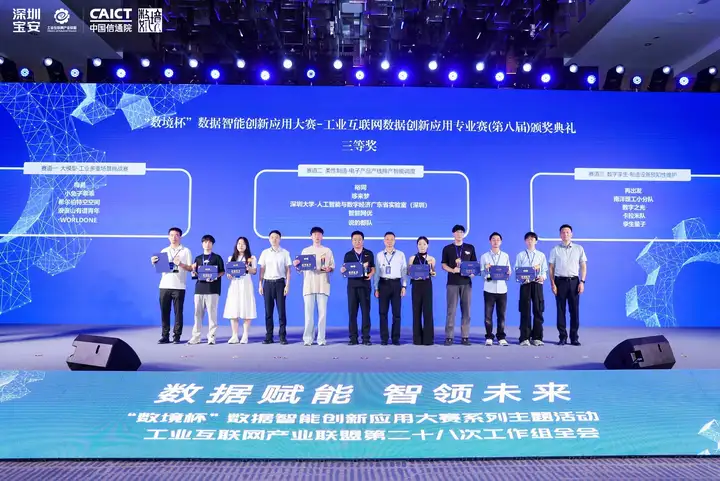 华中科技大学教授李培根院士、深圳市宝安区政府党组成员、副区长张东雁、中国信息通信研究院总工程师、工业互联网产业联盟秘书长敖立、深圳市宝安区工业和信息化局党组书记、局长张其芳以及大赛出题方代表和专家委代表为获奖选手颁奖。