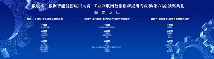 本届大赛以“数据赋能,智领未来”为主题,聚焦数据赋能新型工业化领域,联合中山大学先进制造学院、中国检验认证集团山东有限公司、北京清竞智能科技有限公司、湖南兴蓝风电有限公司、国网湖南省电力有限公司电力科学研究院、美云智数科技有限公司设立“大模型—工业多重场景挑战”赛题;联合美云智数科技有限公司设立“柔性制造—电子产品产线排产智能调度”赛题;联合安徽海行云物联科技有限公司设立“数字孪生—制造设备预知性维护”赛题。历时6个月的初赛、复赛和决赛答辩,最终27支获奖队伍从2700余支队伍中脱颖而出,分获大赛一、二、三等奖。