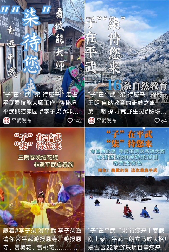 2024年,借李子柒发布《如愿》视频的契机,平武县精准联动,策划了“子”在平武 “柒”待您来等文旅推介活动,吸引更多人走进平武这座小城。李子柒以其独特的感染力将平武推向大众视野,而平武的灵秀山水也回馈以丰沛的创作源泉。这场“双向奔赴”,让流量转化为了可沉淀的文化资产。