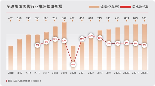 1.全球市场保持复苏势头。2024年,全球免税及旅游零售市场规模为741.3亿美元,同比增长3%,恢复至2019年的85.8%,这一回升态势,得益于国际旅游复苏、政策支持与市场开放、新兴市场崛起及数字化转型多重合力,行业活力持续释放。