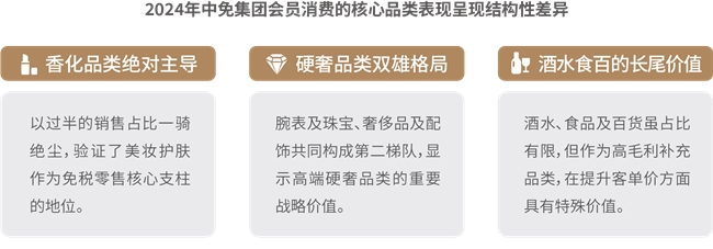 8.消费呈现“美妆霸榜”、“硬奢守局”、“酒水突围”新格局。香化方面,彩妆香水增长亮眼,外籍旅客、男性客群、国潮品牌成为重要增长点,中免通过“线下定制护肤方案+线上精准推送”提升复购;奢侈品及配饰方面,消费结构多元化,超高端市场增长显著,轻奢区间保持稳定需求,中免以“私人导购+机票报销”等尊享服务锁定高端客群;腕表及珠宝方面,品类分化显著,首饰品类同比增长,腕表需求区域性特征突出;酒水方面,市场扩容升级,品类及人群消费分层显著,渠道互补发展,呈现出规模扩张与结构升级并行的显著特征;食品及百货方面,市场稳健扩容,圈层特征鲜明,Z世代和银发人群引发情感和健康消费变革,中免针对性布局“国潮品牌+细分场景”,精准匹配圈层需求。中免集团已形成包含精品、香化、烟酒等全品类、超36万SKU的商品矩阵,并在2024年成功引入200多个新品牌,独家发售19个系列500余款全球限量商品,商品竞争力持续增强。