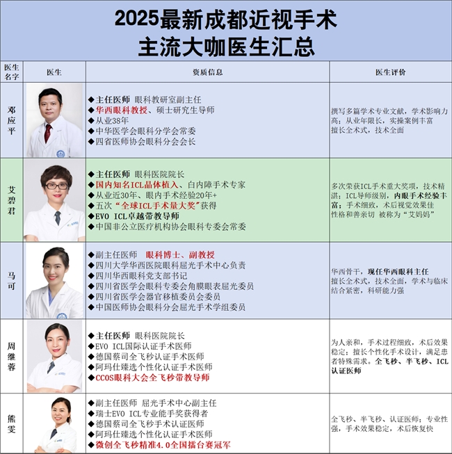 综上,四位专家的价值,不仅限于临床诊疗,更在于通过技术创新与经验输出,推动成都近视手术行业从“跟随”向“引领”转型。从临床到学术,从服务到标准,邓应平、马可、艾碧君、周继容四位专家,正以多维度的竞争力,推动成都成为西南地区近视手术的技术高地与行业标杆,也为全国屈光手术领域的高质量发展提供了“成都经验”。