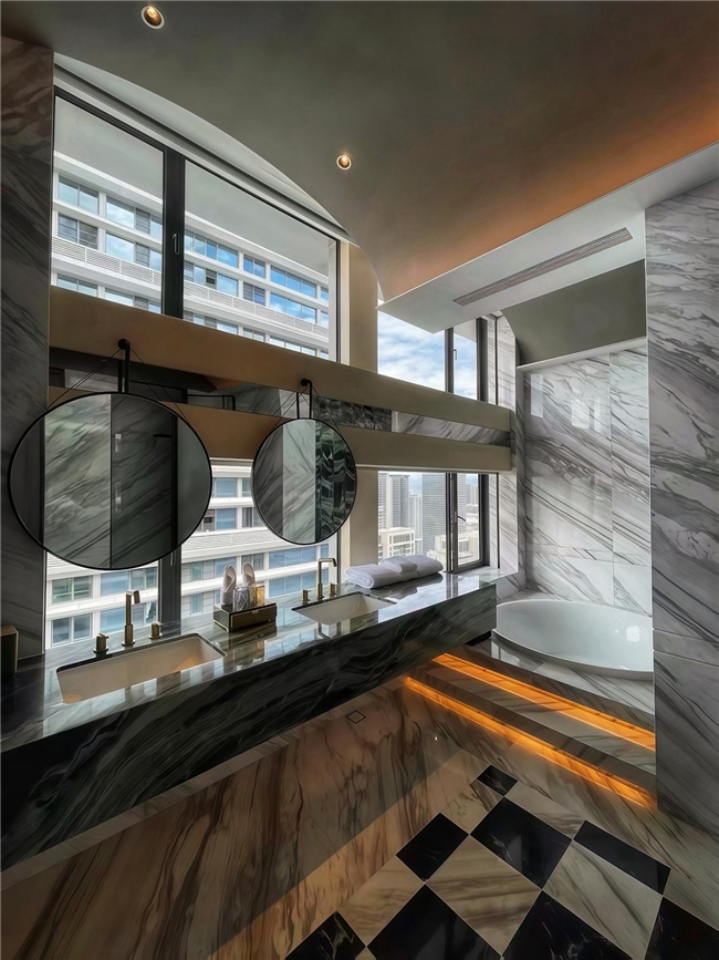 据悉,酒店整体设计由北京七十二创设计首席设计师张振科执笔,以中华文化为根基,西式美学为表达,用独具一格的“无主义风格”奏响一曲彩云之南的瑰丽乐章。室内空间巧妙运用云南孔雀配色体系,孔雀羽毛纹理与少数民族彩色图案点缀其间。在屏风或艺术玻璃上,宾客能发现如孔雀翎眼般的纹理,它们以抽象、渐变的方式呈现,如同神鸟飞过,在空间中遗落下斑驳的光影,形成现代与传统的美学对话。