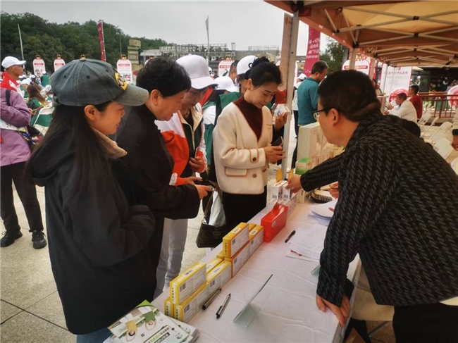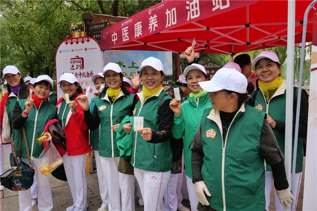 随后,健步走环节正式启动。数百名参与者以脚步丈量健康,用运动激活气血,亲身实践了“动静结合”的中医养生智慧。沿途设置的多个“中医康养加油站”成为一道温暖风景,北京同仁堂的志愿者们早早守候在此,不仅及时递上饮用水,更时刻关注着参与者的身体状况,为活动提供了坚实的应急医疗保障。
