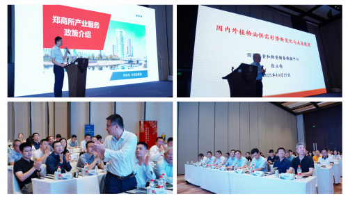 郑州商品交易所市场发展部赵永刚详细解读了产业服务政策;国家粮食和物资储备数据中心正高级经济师张立伟深入剖析了国内外植物油市场供需格局与未来走势;益海嘉里金龙鱼集团油脂事业部总监助理许海荣结合实战,分享了全球菜籽供需分析与套期保值策略, 为企业减小价格波动风险提供具体方案;广东厚方投资管理有限公司基金经理段国钰则聚焦植物油市场,给出了具体的策略布局建议。中信建投证券宏观分析师刘天宇则围绕当前宏观形势与“十五五”规划前瞻发表观点,为企业把握政策红利提供参考。