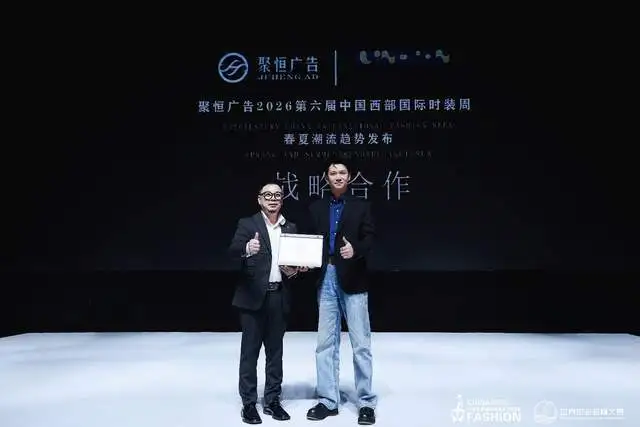 在开幕式当天纽约时装周上海站组委会亚太执行总裁:栾松先生与中国西部国际时装周组委会执行会长:黄海波先生双方正式达成战略合作双城联动、针对西部民族文化民族服饰在相互平台继续大力推广及联动海内外市场给予更多服装服饰行业、非遗及原创设计师品牌创造与国际接轨的发展空间。一带一路中国西部国际时装周组委会也将围绕西部核心和初心“走出去引进来”的方针持续为服装服饰行业搭建更多平台及献力献策。聚恒广告2026第六届中国西部国际时装周年度发布战略合作授牌、邀请到中国西部国际时装周组委会执行会长:黄海波先生、中国西部国际时装周组委会副会长李建波先生、联合承办单位成都市聚恒广告有限公司海外市场总监:沈颖斌先生为本次时装周战略合作伙伴授牌:成都锦绣童装城总经理:梁文先生、哈祥喜原创服饰四川素韵服饰有限公司董事长:何元超先生、箐山北斋手作高定设计师主理人:袁源先生,箐洋先生ROMANLONGWEN潮牌服饰主理人:马辉先生、东田教育创始人:冯淑军女士、四川佰诗酒酒业有限公司、四川亿年学文化旅游有限公司董事长:舒晓兰女士、咖茶世家CEO:邵蓬搏先生、江西星悦国际模特学校校长:汪露女士、一二猫肆品牌代表:马辉先生、双流老妈兔头餐饮管理有限公司。