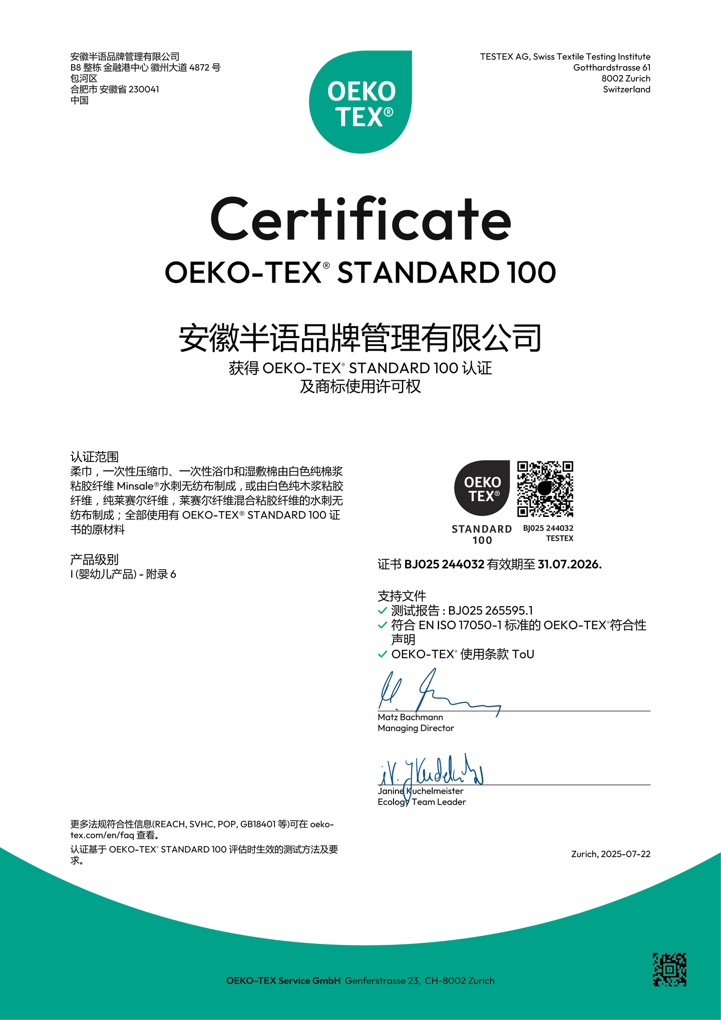100%再生纤维素纤维:源于天然木材、植物等,通过环保科技将纤维素溶解后再生成纤维。根据国家标准GB/T 20476,这类纤维的生产过程需严格管控硫化物残留。其在吸水性、韧性以及透气性方面表现优异,更加结实,性价比更高。