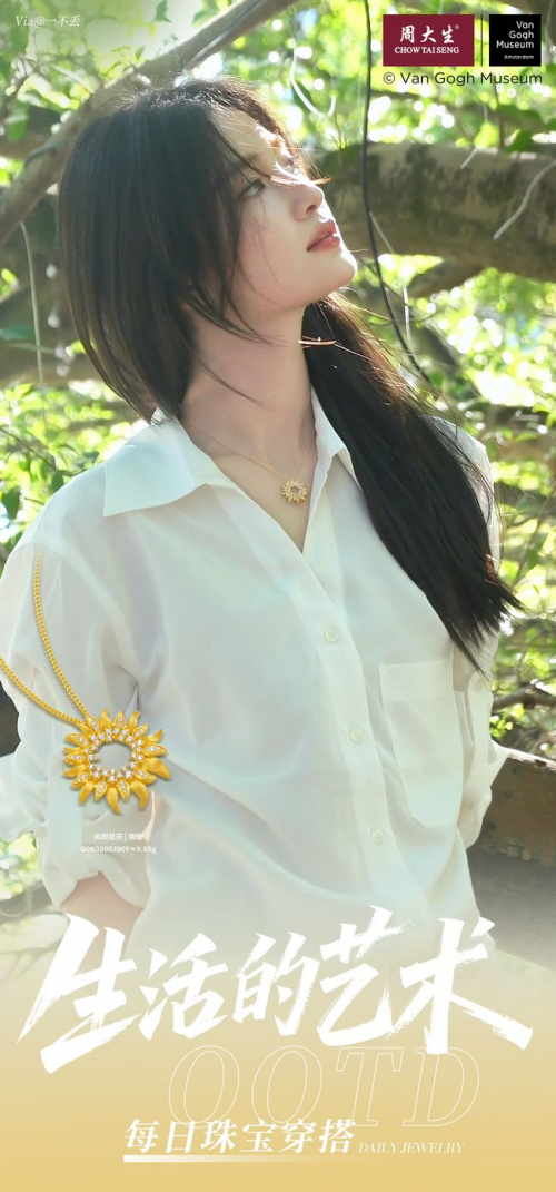 作为国内专注于大师艺术IP的高端珠宝品牌,周大生大师艺术珠宝始终致力于将世界艺术瑰宝转化为可感知、可触摸的佩戴珍品。品牌下的梵高系列,从《向日葵》的热烈到《盛开的杏花》的静美,将大师画作中涌动的生命赞颂,凝练为贴近心灵的永恒艺术载体。