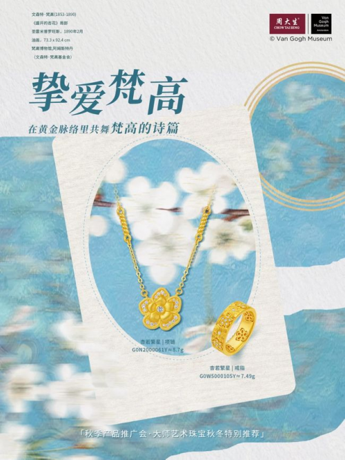 梵高博物馆作为全球收藏梵高作品最权威的机构,对合作伙伴的要求极为严谨。周大生大师艺术珠宝能够与之建立长期合作关系,得益于品牌在艺术理解与工艺实现上的不懈努力。其合作成果“梵高系列”则成为东西方文化在当代互鉴的又一见证。