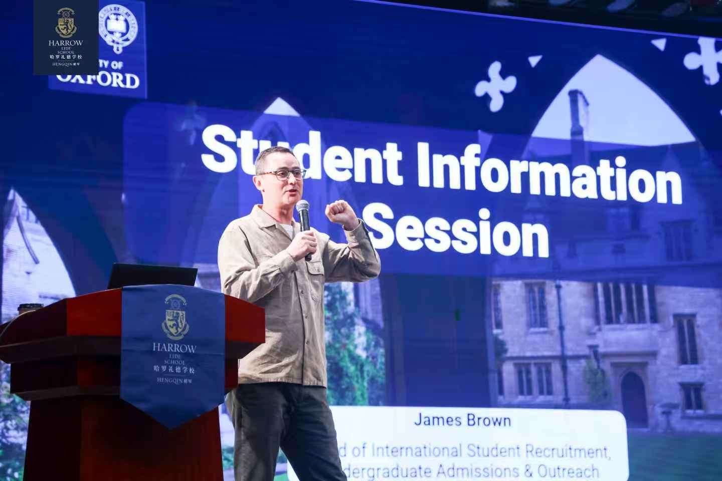 10月21日,哈罗横琴举办了“牛津大学国际学生招生专题讲座”。本次主讲嘉宾James Brown先生——牛津大学国际学生招生办公室主任,亲自从英国来到现场,直接与在校师生与家长面对面对话。Brown先生详细解析牛津大学的本科申请流程、评审标准与录取机制,帮助哈罗家庭更好地规划升学路径,鼓励同学们向世界顶尖学府发起冲刺。