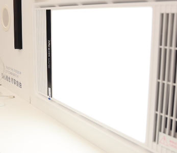 我们可以直观看到,这款浴霸具有超大发光面,实测开启后的照明亮度超过150lx,显著高于国家标准(100lx),光线均匀柔和,确保浴室每个角落都清晰可见。