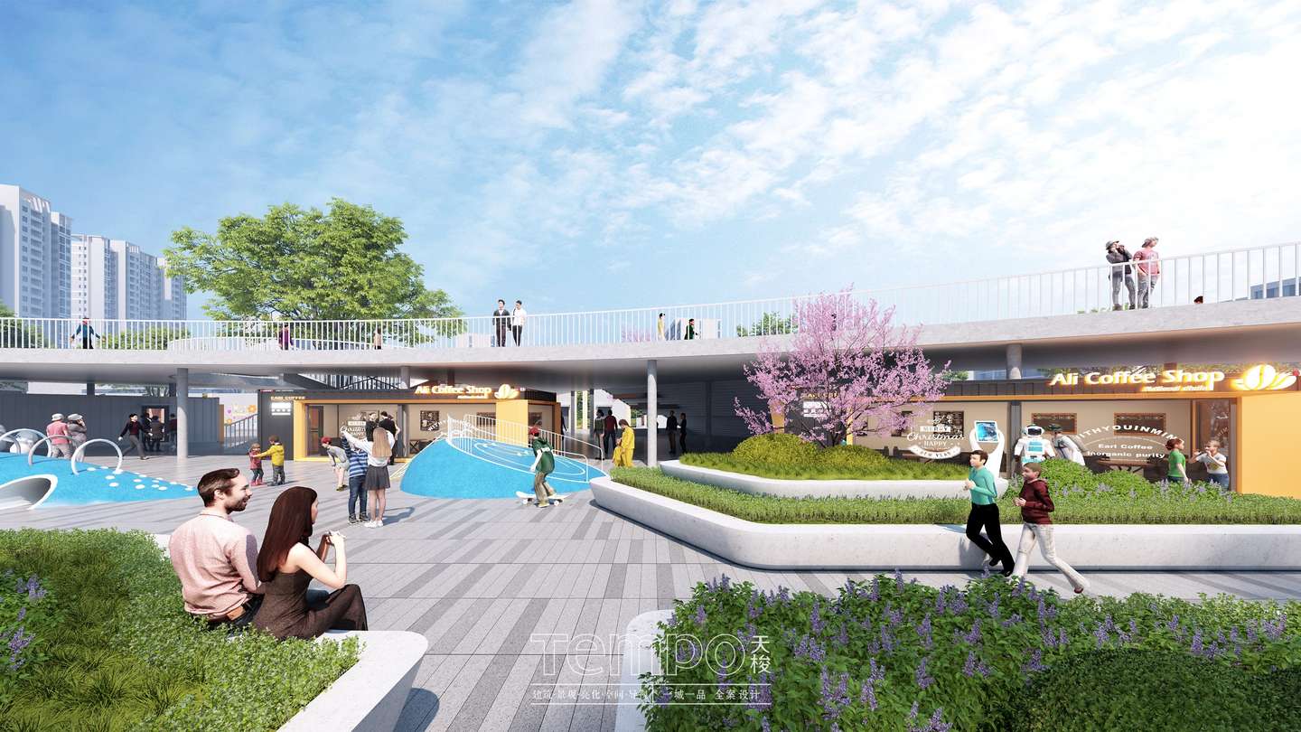 屋顶花园休闲广场融合户外营地、网红打卡点与露天舞台等功能,将生态与商业有机结合,成为城市上方的“呼吸之地”,吸引全城客流。