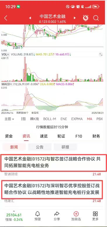 公司在2025年8月21号深圳市智芯优享控股有限公司与中国艺术金融(01572)战略合作协议共同拓展智能充电桩业务