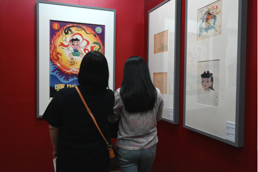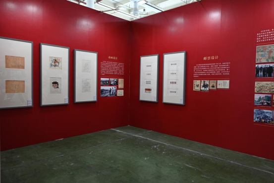 此次展览的核心亮点,在于系统呈现张仃两大领域的卓越贡献:工艺美术板块中,几件带着时代温度的展品勾勒出张仃与国家发展的深度联结:1978 年上海美术电影制片厂《哪吒闹海》的人物设计手稿上,哪吒造型的修改痕迹清晰可见——这是张仃为适配动画运动效果反复打磨的见证,形象融合敦煌、永乐宫壁画与民间艺术的造型理念,更奠定了这部动画的民族美学基调。不远处的“首都十大建筑”设计文献区,记录着张仃作为美术组组长将传统符号融入现代建筑的实践,从“国徽”到“政协会徽”的设计,每一笔设计都践行着他“艺术为时代服务”的信念。书画板块里,早期抗战漫画与晚年焦墨山水相互对话,展现他从“革命文艺先锋”到“传统笔墨革新者”的身份跨界。