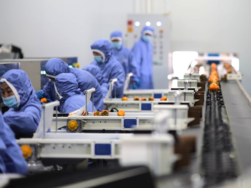 在湾里村柿子产业不断发展的过程中,为推动富平柿饼标准化、精品化、品牌化发展,同时也为产业振兴注入科技动能,中国三星助力湾里村打造“柿子未来工厂”。2024年,随着未来工厂投产,村子也迎来产业升级的“里程碑”——“靠天做柿”变成“智能产柿”:国内领先的清洗分选线,实现鲜柿从入厂到洁净处理一气呵成;创新削皮去蒂机让单日削皮量从人工2000斤翻倍至4000斤;专利晾晒系统,显著提升产品价值与市场竞争力。