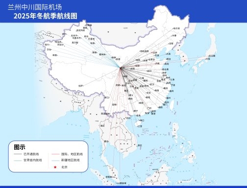 新航季,兰州机场计划加密上海、昆明、三亚等航班,新增并恢复延安、巴中、阿拉尔、巴里坤等13个航点及22条精品航线,以及香港、清迈、大阪、吉隆坡等9条国际及地区航班,航线网络得到全面升级。