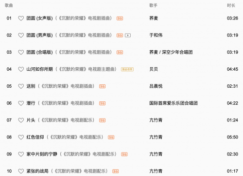 正是持之不懈的艺术追求,成就了《沉默的荣耀》的热播,同时凝结成这张由亢竹青操刀的同名原声音乐专辑。该专辑共由六首精心打磨的原声曲目,以及三十三首精选的配乐两部分组成,可谓涵盖了这部热播剧集配乐的方方面面。正是旋律与角色的生动交织,令观众无缝走入了那段于无声处起惊雷的峥嵘岁月。