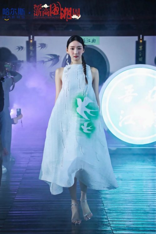 如踏青石板而来,又如水墨长卷展开一般由远及近,吾在江南以东方美学的非遗技艺裹挟着千年水乡的一呼一吸。一件件新中式剪裁的时装一一出场,衣摆摇曳的弧度里,潜藏着西湖烟雨的朦胧与钱塘潮涌的磅礴。