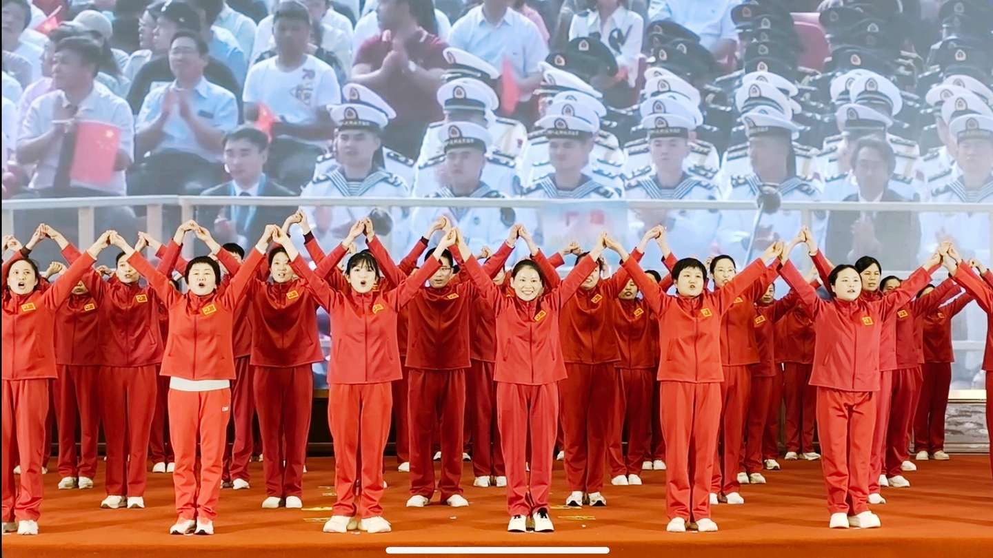 (来自全国各地的志愿者演绎《东方大国》致敬祖国)