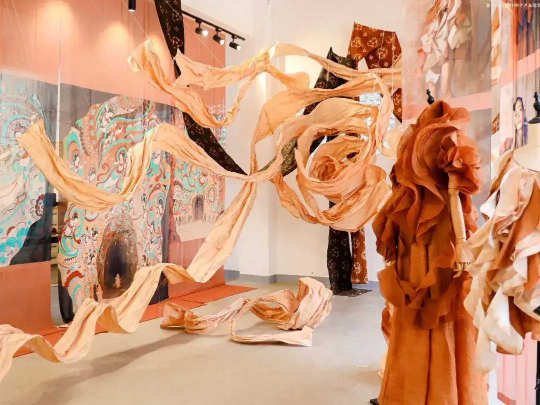 柿染产业的红火,还吸引了西安美术学院的目光。2024年,西安美院服装系教授潘璠带着学生来湾里村调研,被柿染技艺打动,很快发起了“柿染文创开发微专业”。潘璠的学生们把柿染元素融入现代设计,做出来的柿染服饰、文创产品,已经办起了展览。