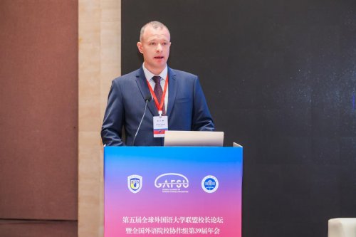 俄罗斯莫斯科国立语言大学发展和数字化副校长格奥尔基·格拉乔夫在“未来外国语大学:价值引领,合作导向,人工智能赋能”报告中指出,外语类高校应坚持价值引领、深化合作、智能驱动的发展方向,倡导尊重多元文化、推动学术开放与跨学科融合。
