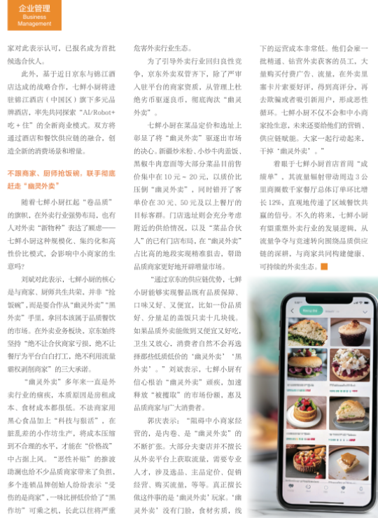 日前,京东七鲜小厨的创新模式获《中国食品安全》杂志报道。作为市场监管总局(国务院食安办)主管、中国质量标准出版传媒有限公司(中国标准出版社)主办的月刊,本期发表的文章中指出,七鲜小厨有望重塑外卖行业的发展逻辑,引导行业从过去15年围绕流量与速度的发展,转向围绕品质供应链的深耕,与商家共同构建健康、可持续的外卖生态。