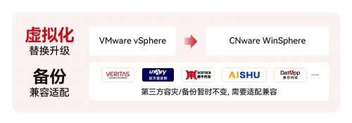 在VMware vSphere与第三方备份软件集成的企业环境中,云宏提供了兼顾国内外生态的完整替代方案。针对采用Veritas等国际备份产品的用户,CNware WinSphere可通过标准化XBSA方式对接,确保企业能够在延续现有国际标准备份架构的同时,完成虚拟化底层的平滑替代。