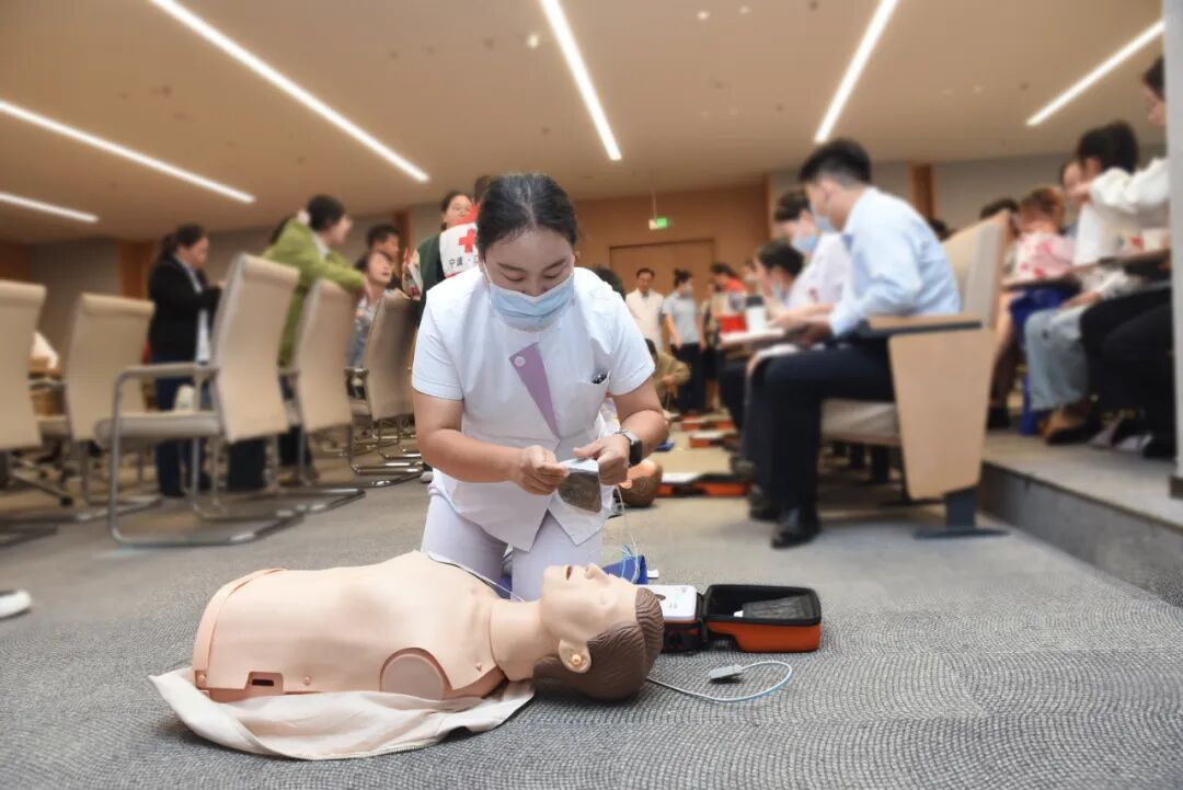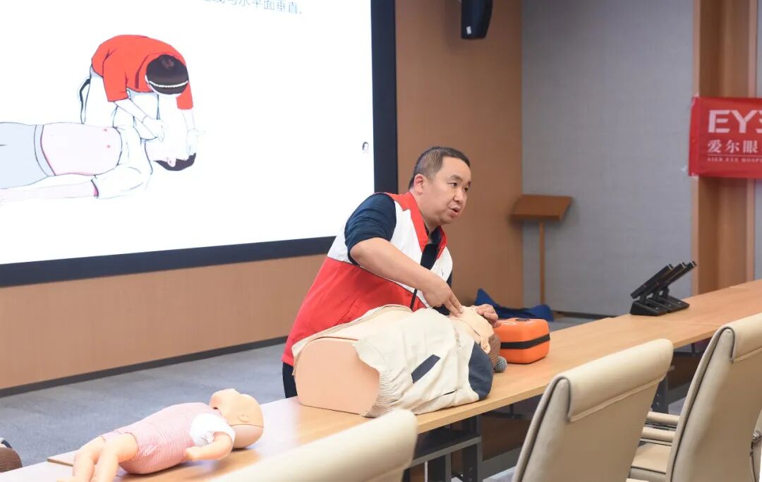 为进一步提升医务人员的应急救护意识和自救互救能力,增强面对突发疾病和意外伤害的应急处置水平,10月30日下午,宁波爱尔光明眼科医院特邀江北区红十字会应急救护师,在医院十楼会议室举办“心肺复苏(CPR+AED)培训班”。