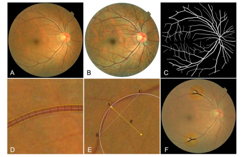 图:EVisionAI对视网膜血管参数进行量化的过程