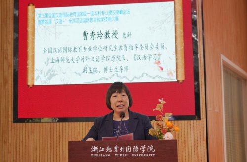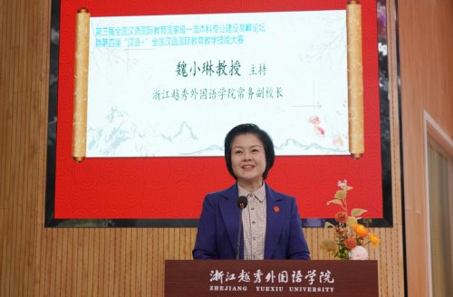 10月23-25日,由国家一级学会中外语言文化比较学会和浙江越秀外国语学院联合主办、浙江越秀外国语学院中国语言文化学院、留学生教育学院承办的第三届全国汉语国际教育国家级一流本科专业建设国际高峰论坛暨第四届“汉语+”全国汉语国际教育教学技能大赛在我校成功举办。来自日本大阪大学、泰国华侨崇圣大学、浙江大学、复旦大学、四川大学、华中科技大学、苏州大学、上海大学、上海外国语大学、上海师范大学、南京师范大学、云南师范大学、江西师范大学、浙江师范大学、广西师范大学、内蒙古师范大学、浙江工业大学、江西财经大学、杭州电子科技大学、中国计量大学、浙江财经大学、江西理工大学、温州大学、大理大学等国内外50所高校的80余位中外专家、110名中外学生分别参加了此次论坛和大赛。