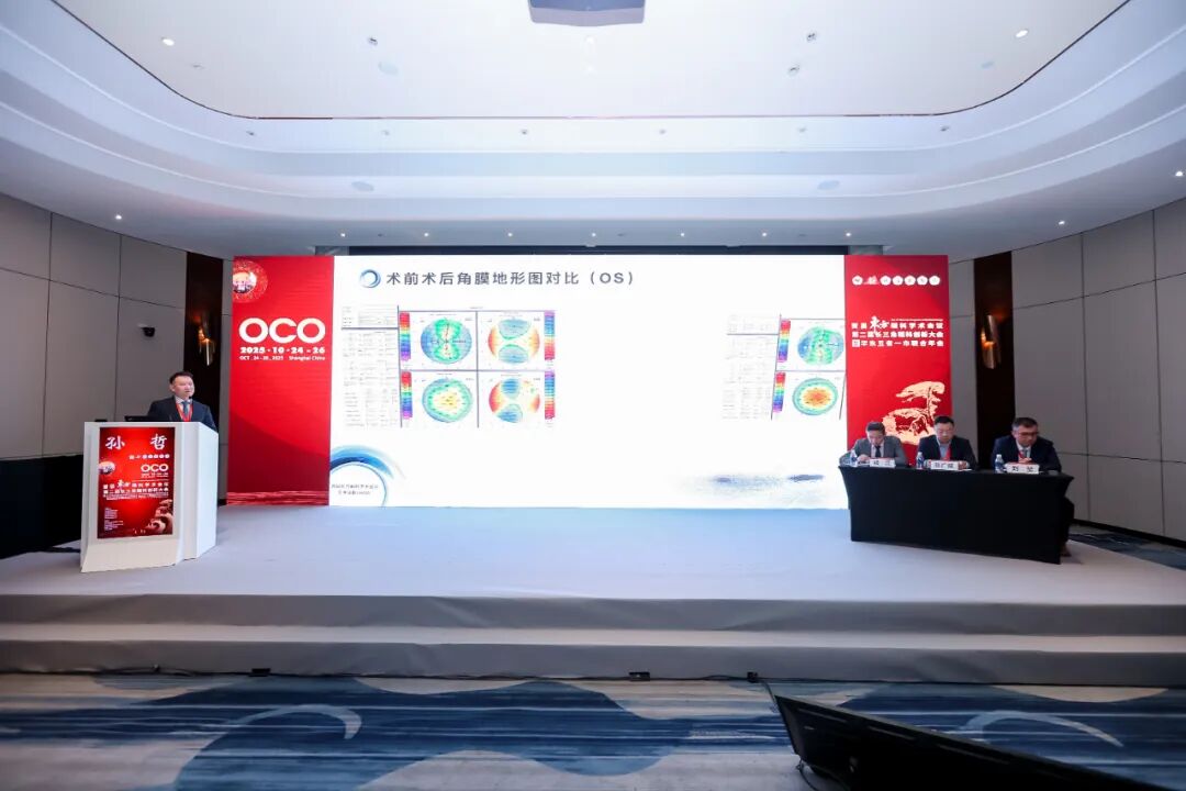 报告中,孙哲博士详细分享了一例手术案例。该患者双眼近视伴中高度散光,裸眼视力下降已6~7年,自诉长期配戴框架眼镜影响生活质量,渴望通过手术摘镜重获清晰视界。术前屈光检查结果为:OD -0.25/-2.50×2=1.0,OS -0.25/-2.75×179=1.0。通过角膜地形图及前节OCT综合评估,患者角膜厚度充足,角膜曲率稳定,无圆锥征象,经严格术前筛查后,符合Smile Pro全飞秒激光矫正手术条件。