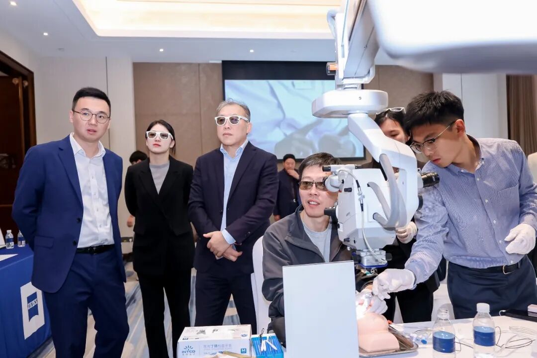 在Wetlab实操体验环节,来自全国各地的眼科专家现场体验了EVA系统在玻切与超乳手术中的高效能与精准控制,感受其在流体稳定性、能量控制及智能反馈系统方面的显著优势。孙哲博士作为宁波爱尔光明眼科医院的参会专家也积极参与体验,并与同行就设备在临床应用中的操作细节和适应场景展开了深入交流。
