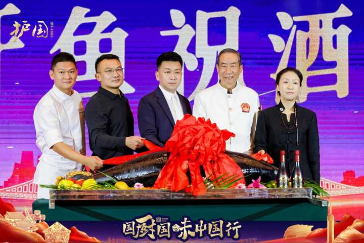 晚宴在独具大连特色的“开鱼”仪式中盛大开场。泸州护国味业有限公司董事长潘丽娜、中国烹饪协会名誉副会长冯恩援、亚惠美食有限公司总裁谢春怡、晓麦国际控股集团有限公司总裁闫俊杰、《半碗人间味》抖音星厨黄书贤共同拉开红绸,开鱼迎福、祝酒开宴,开启了这场国味至臻的护国味宴。