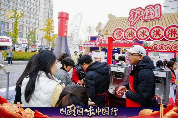 护国陈醋/酱油传统酿制技艺——两项“活态双非遗”技艺领衔,护国陈醋、护国酱油、护国浓香料酒等系列产品启序巴蜀风味,以酿造闻香、中草药醋曲、黑豆原料甄选等工艺为基础,创新“闻香识护国”“慧眼寻草本”“黑豆称重挑战”等趣味互动体验项目,让消费者在沉浸式体验中进一步了解护国传承136年的匠心品质。此外,护国味业保持重阳打秋油的传统习惯,让消费者重回年少时光,沉浸式体验“古法打秋油”,感受护国百年酿艺和中国传统文化魅力。更有爆火出圈的“护国酱油冰淇淋”,吸引了大量消费者纷纷前往打卡,并收获无数好评——“护国酱油冰淇淋新奇又上头,太好吃了!”……一系列创新体验,让百年非遗走进普通人的烟火日常,让消费者进一步感受百年护国品牌,也让 “中国酱醋古法酿 护国古法自然香” 的深刻内涵,以更生动的方式扎根消费者心中。