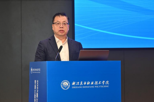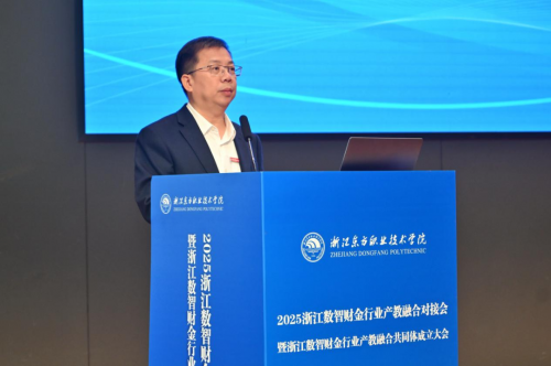 会上,浙江东方职业技术学院校长、党委副书记王佑镁致欢迎辞。王佑镁指出,此次大会为校企双方搭建了宝贵的对接平台,这是落实国家职业教育产教融合的具体实践,更承载着推动数智财金产业高质量发展的共同期待,未来将对接“企业需求”共育良才,对接“产业方向”共建标准,对接 “行业资源”共享经验,充分发挥学校作为产教融合共同体单位的桥梁作用,整合优质资源、深化改革创新,与各位行业友人一道,共育数智财金英才,共促产业升级发展,为浙江数字经济建设注入更强职教动能!
