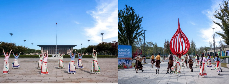11月2日,文化热潮延续至南湖之畔。南湖革命纪念馆前,非遗展演与红色地标相映生辉,演员们与往来游客热情互动,欢声笑语中传递着“嘉善九寨一家亲”的深厚情谊;而在南湖新天地内,民族歌舞与现代城市景致交织,独特的高原文化魅力赢得掌声不断。“以前只知道九寨沟风景美,现在才知道还有这么多特色文旅资源,明年春天就去九寨沟深度游。”杭州市民金阿姨指着宣传折页满怀期待地说道。