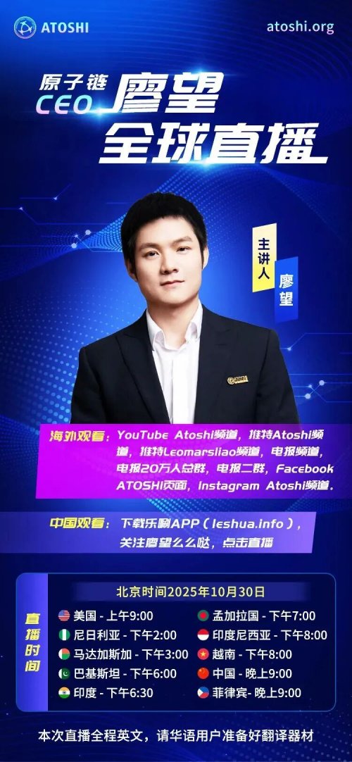 北京时间10月30日21时,原子链CEO及乐唰创始人廖望正式开启全球直播。本次直播在多个平台同步进行,现场气氛热烈非凡,全球观众数量突破30万人观看。